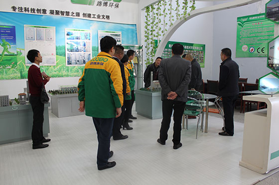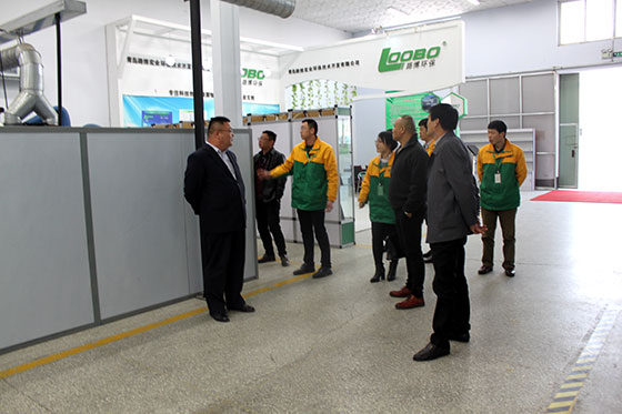 路博公司高層參加會議,營銷副總楊總對企業進行了詳盡全面的介紹,并帶領共青城領導參觀了路博企業的展廳及生產車間的新型環保設備和生產線。