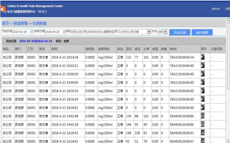 顯示內容:測試人員實時相片、名字、卡號、工號等等